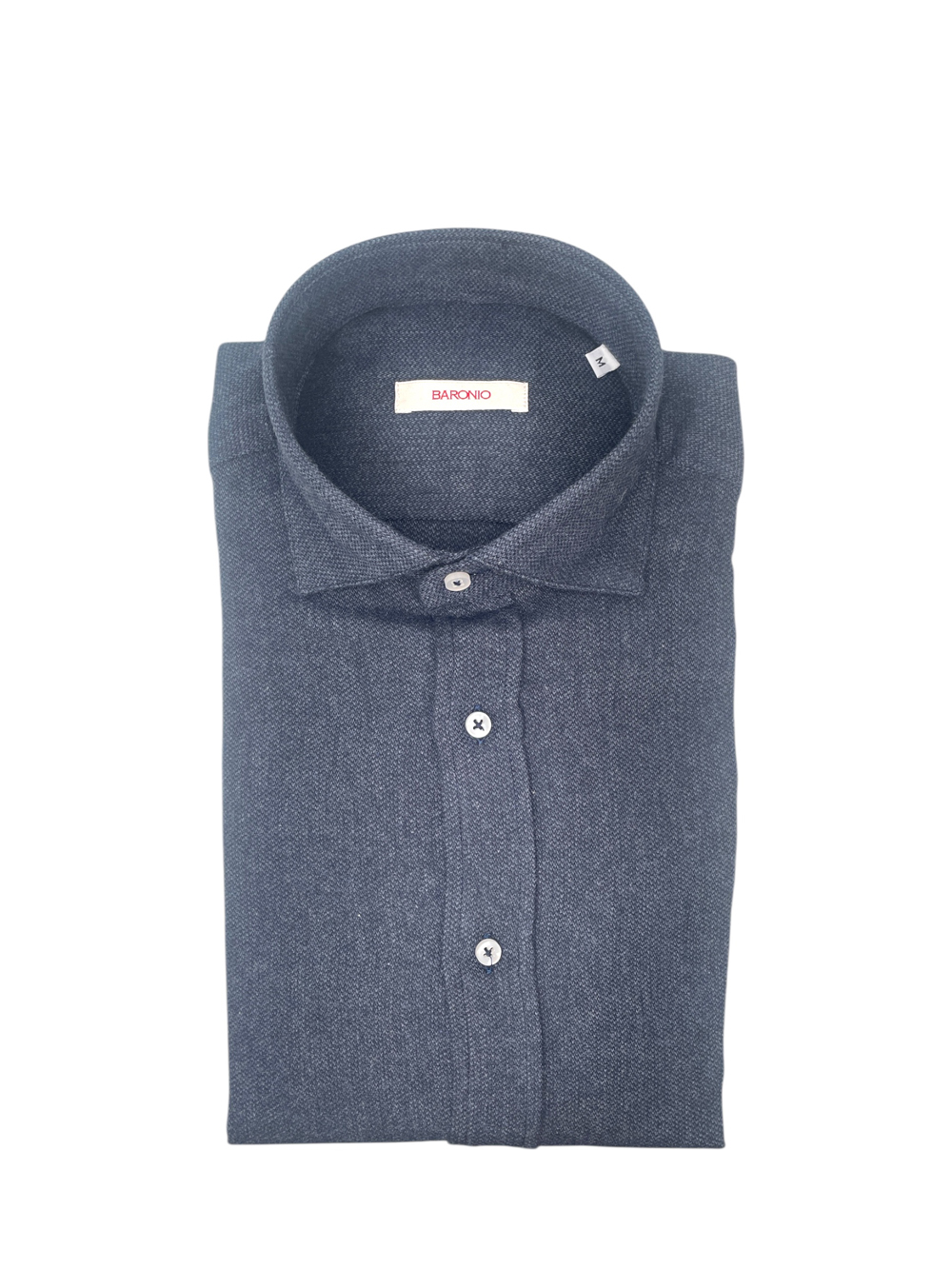 Questa camicia è realizzata in 100% cotone piquet. Presenta un collo francese semi morbido e una chiusura centrale con bottoni. I polsini sono di forma rotonda. Il capo ha un fit regular. Il colore è una tonalità di blu.