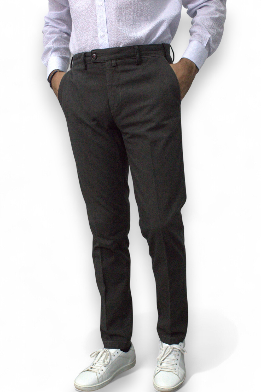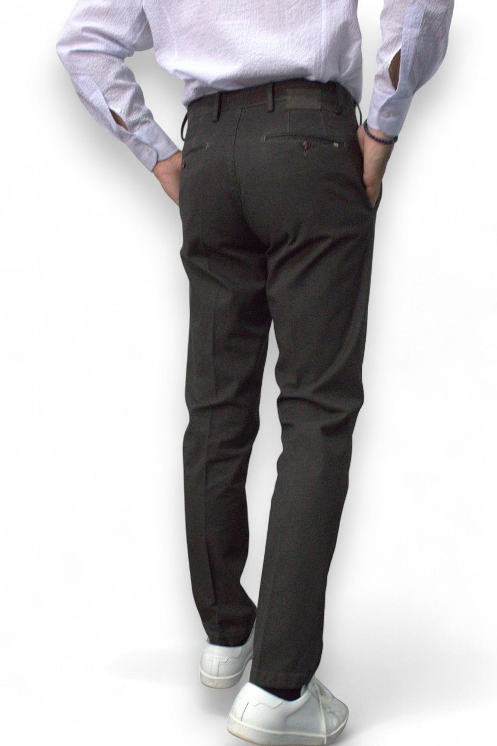 PANTALONE CHINO IN COTONE TINTO FILO COLOR TORTORA