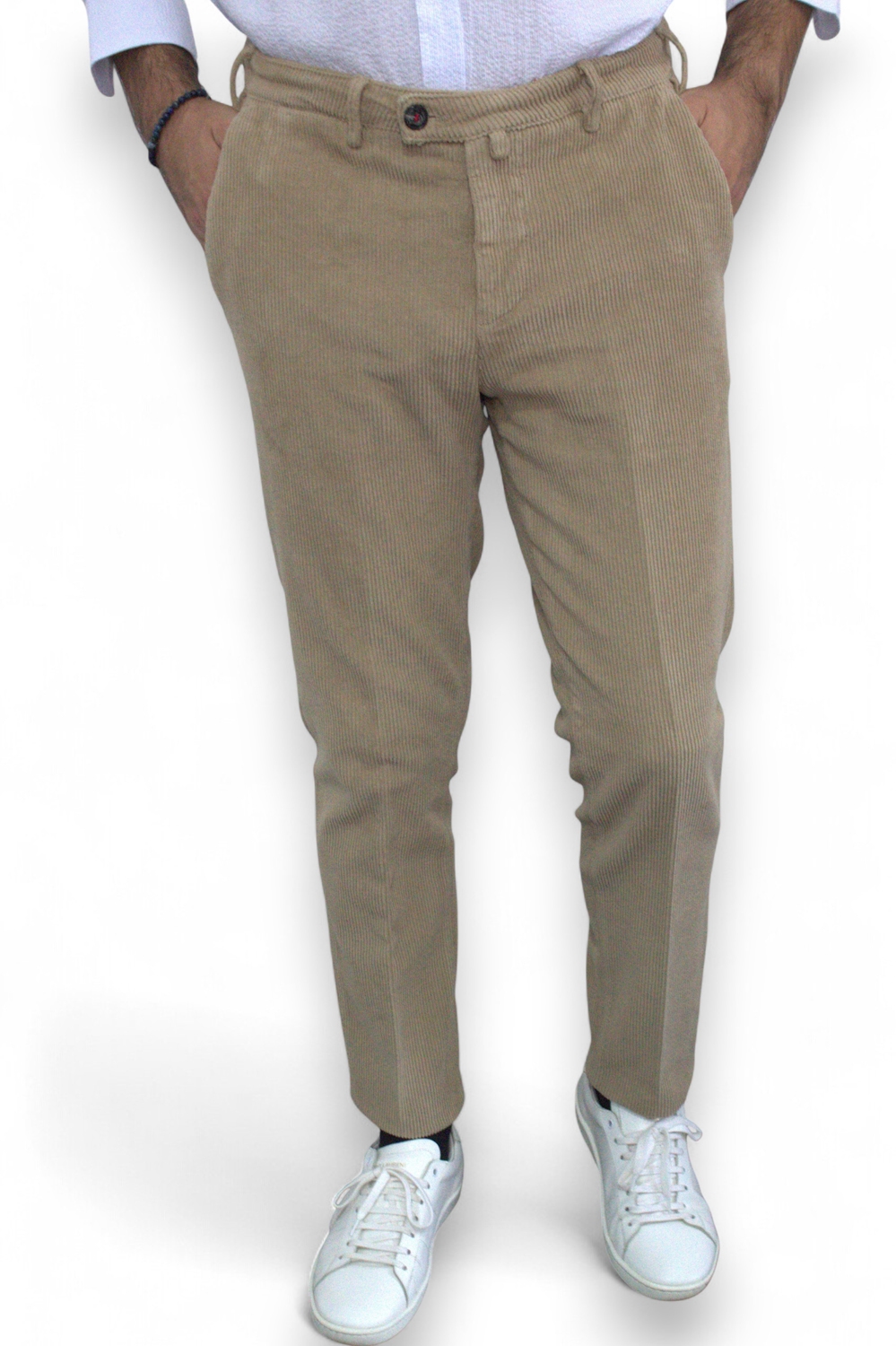 PANTALONE CHINO IN VELLUTO RIGATO COLOR FANGO