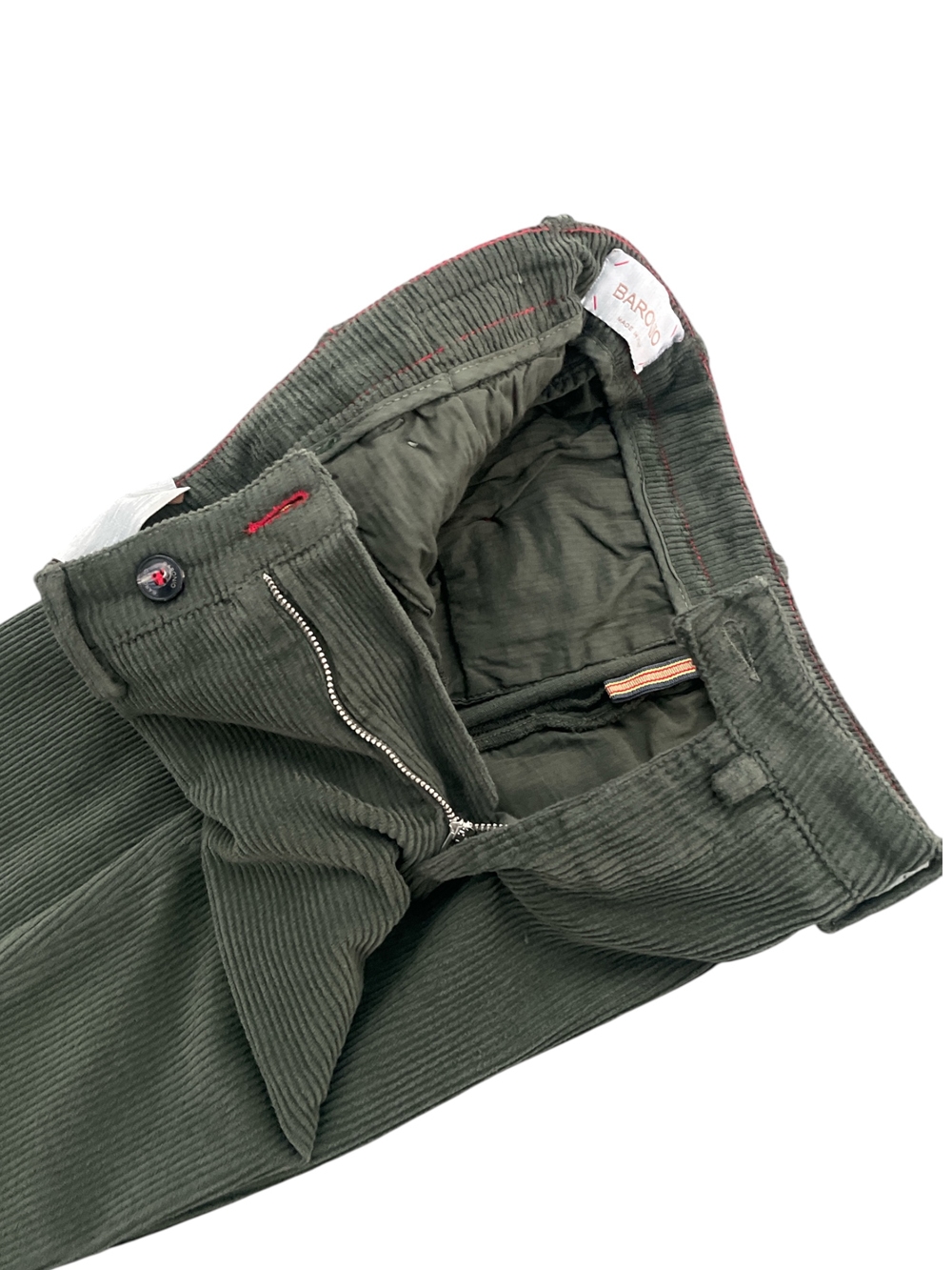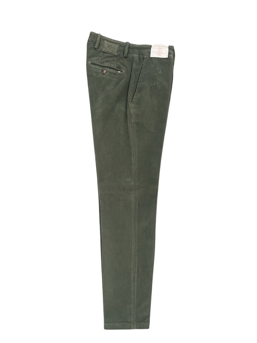 PANTALONE CHINO IN VELLUTO RIGATO COLOR VERDE MILITARE