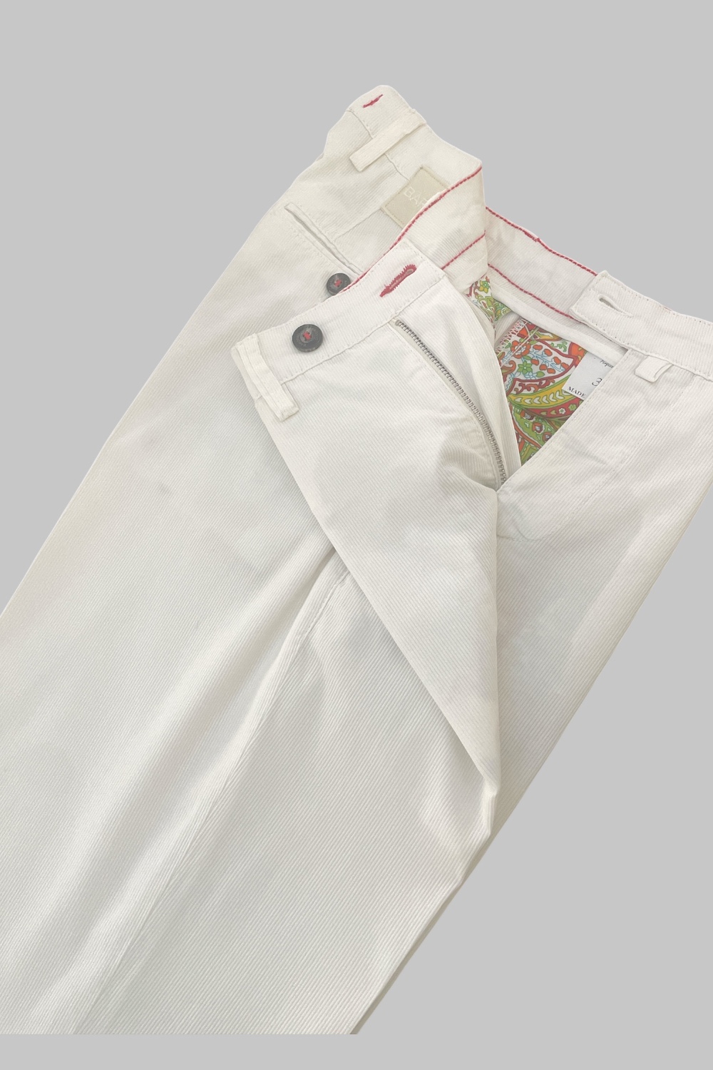 PANTALONE CHINO REGULAR FIT IN COTONE MILLERIGHE COLOR BIANCO
