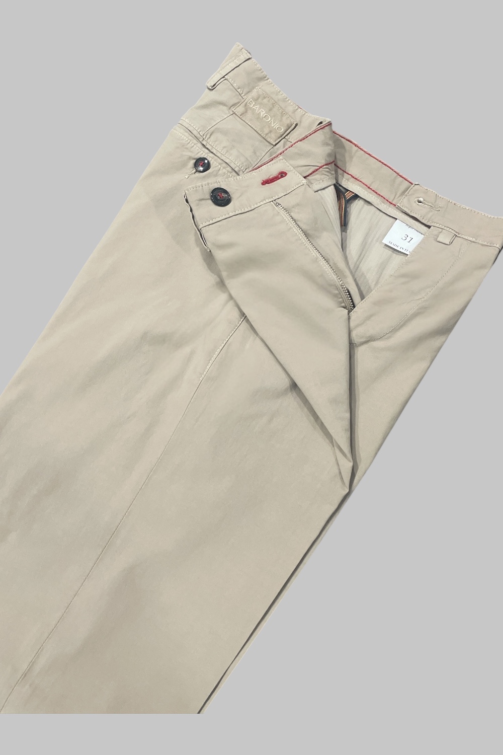 € 135,00Pantalone tasca america dal tocco dinamico e versatile, tasche laterali oblique, tasche posteriori a filetto con bottoni, passanti per cintura, chiusura con zip, regular fit.