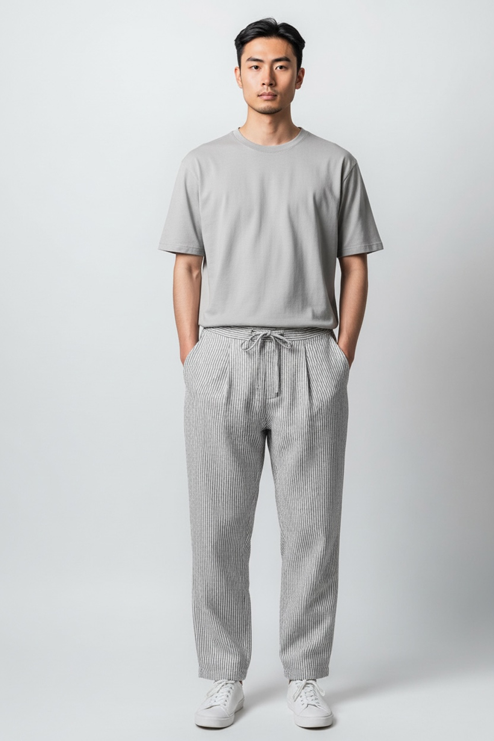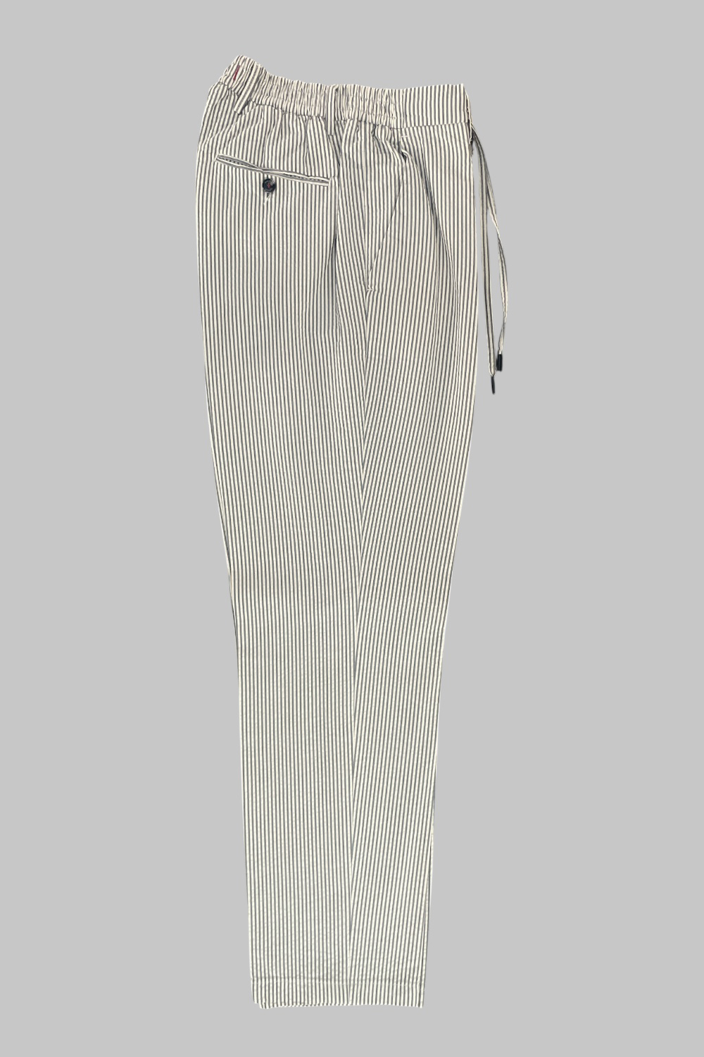 PANTALONE CON COULISSE E PINCES IN 100% COTONE RIGATO COLOR RIGA BLU SCURO
