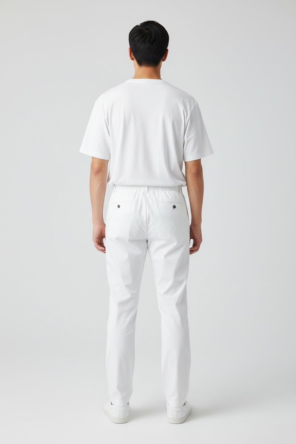 € 140,00Pantalone comfort fit tasca america con elastico in vita. Tasche posteriori con pattine, chiusura centrale con zip, passanti per cintura e comfort fit.