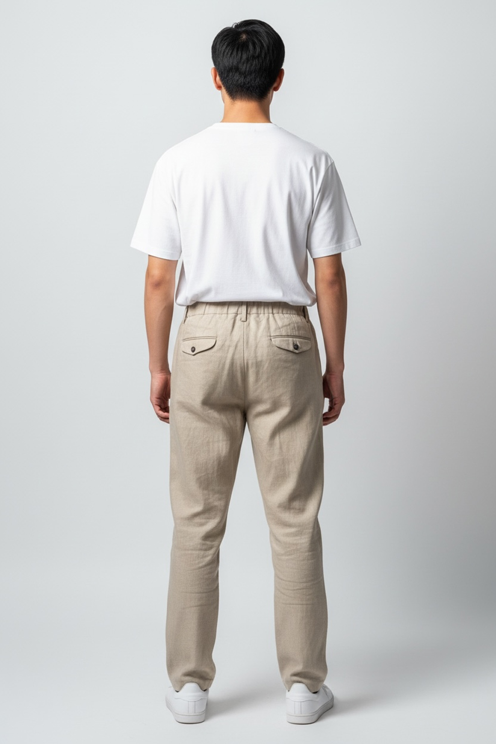 Pantalone realizzato in lino dal gusto pratico dinamico e leggero per outfit semplici ed essenziali di ogni momento della giornata.