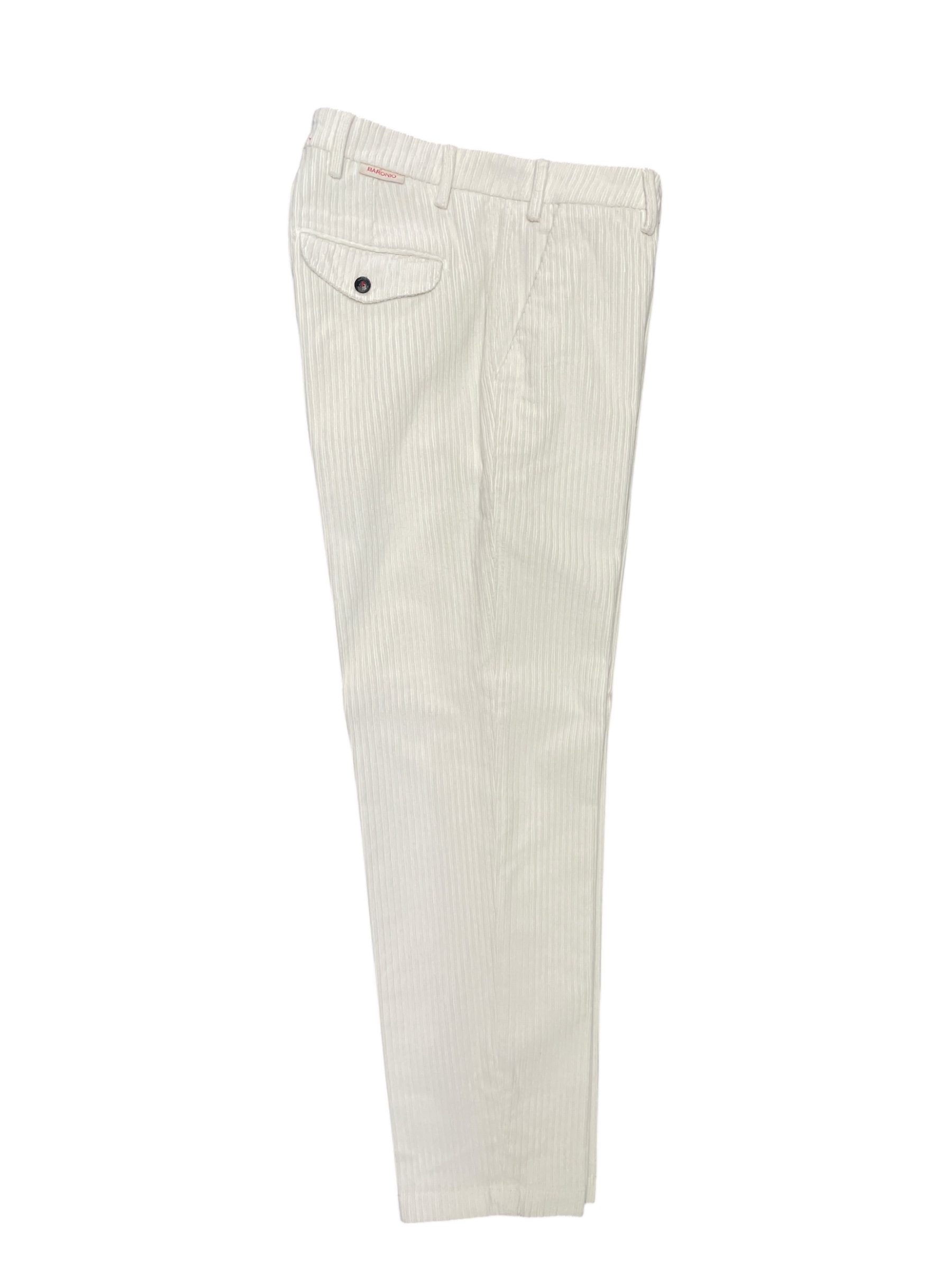 PANTALONE CON PATTINE COMFORT FIT IN VELLUTO ROCCIATORE COLOR PANNA