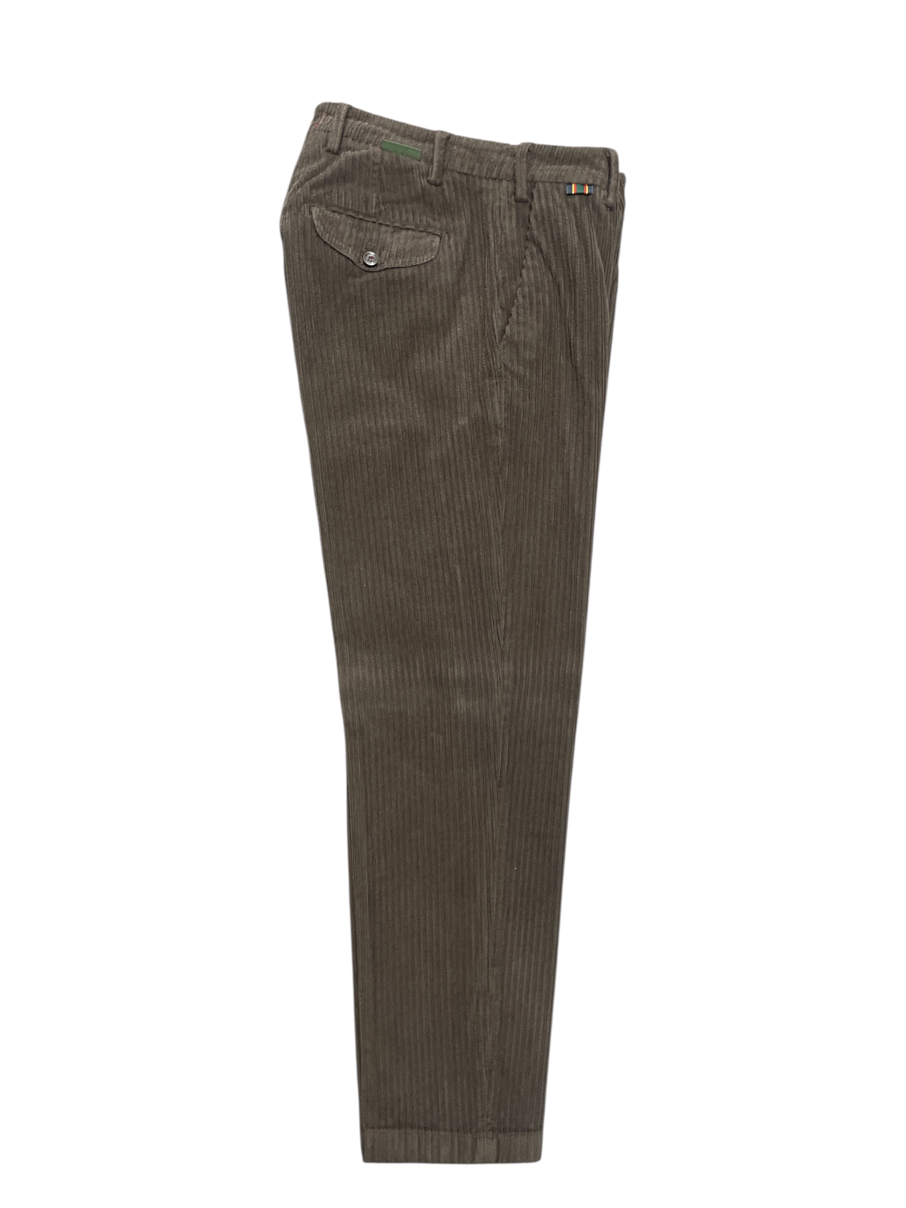 PANTALONE CON PATTINE COMFORT FIT IN VELLUTO ROCCIATORE COLOR TORTORA