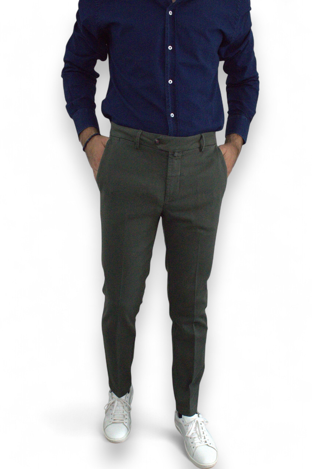 PANTALONE SLIM FIT IN COTONE DIAGONALE COLOR VERDE MILITARE