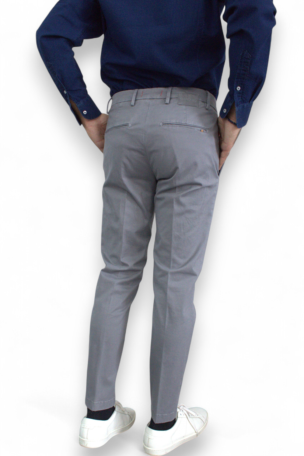 PANTALONE SLIM FIT IN RASO COLOR GRIGIO CHIARO