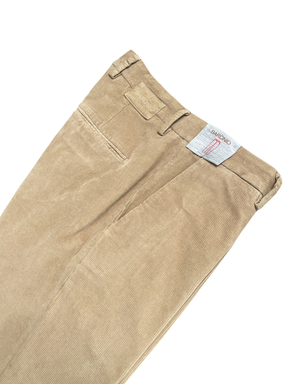 PANTALONE SLIM FIT IN VELLUTO ARMATURATO COLOR BEIGE