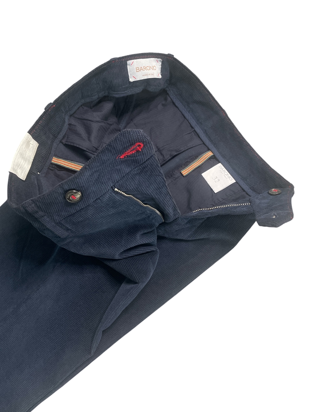 PANTALONE SLIM FIT IN VELLUTO ARMATURATO COLOR BLU SCURO