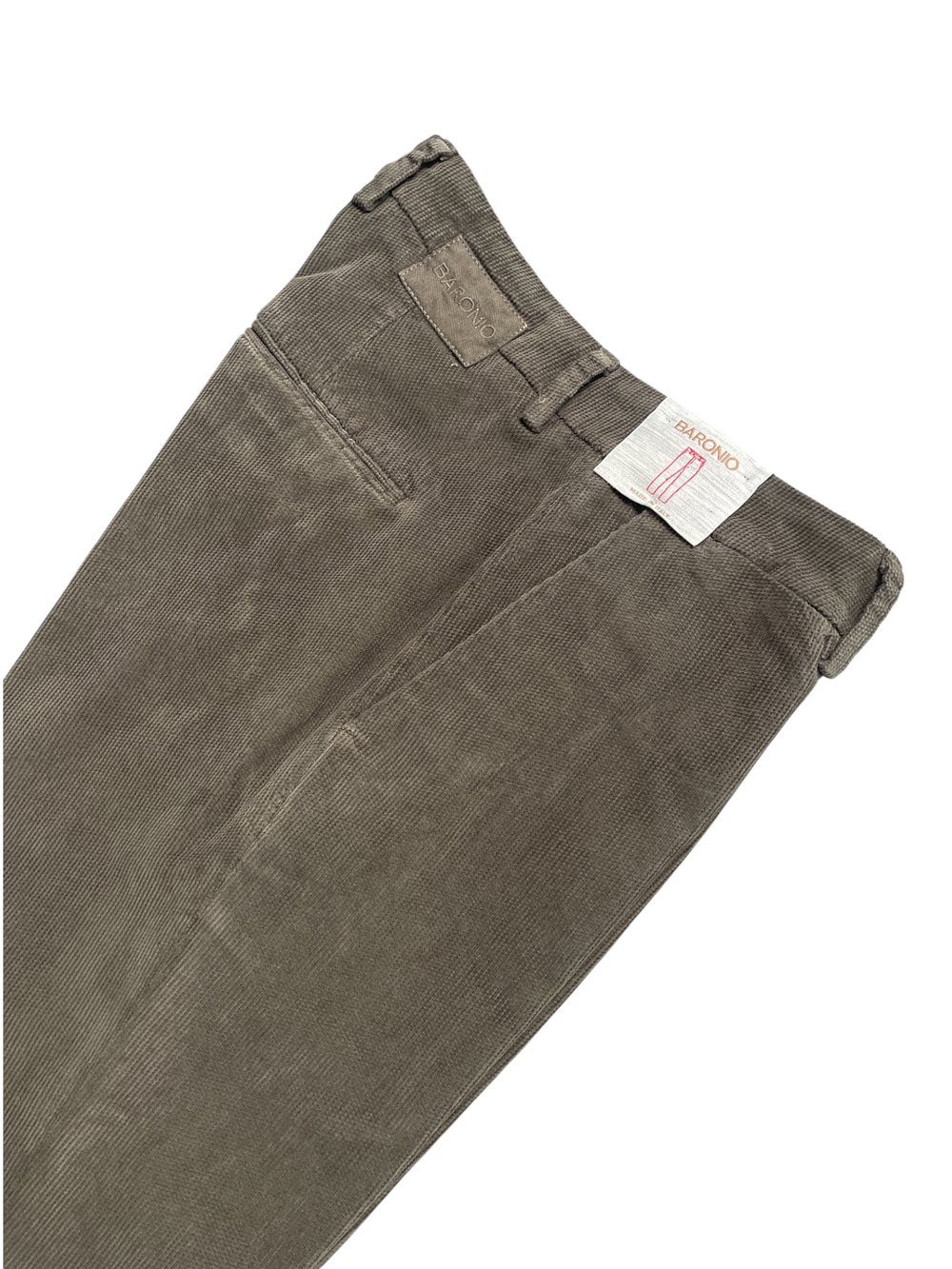 PANTALONE SLIM FIT IN VELLUTO ARMATURATO COLOR TORTORA