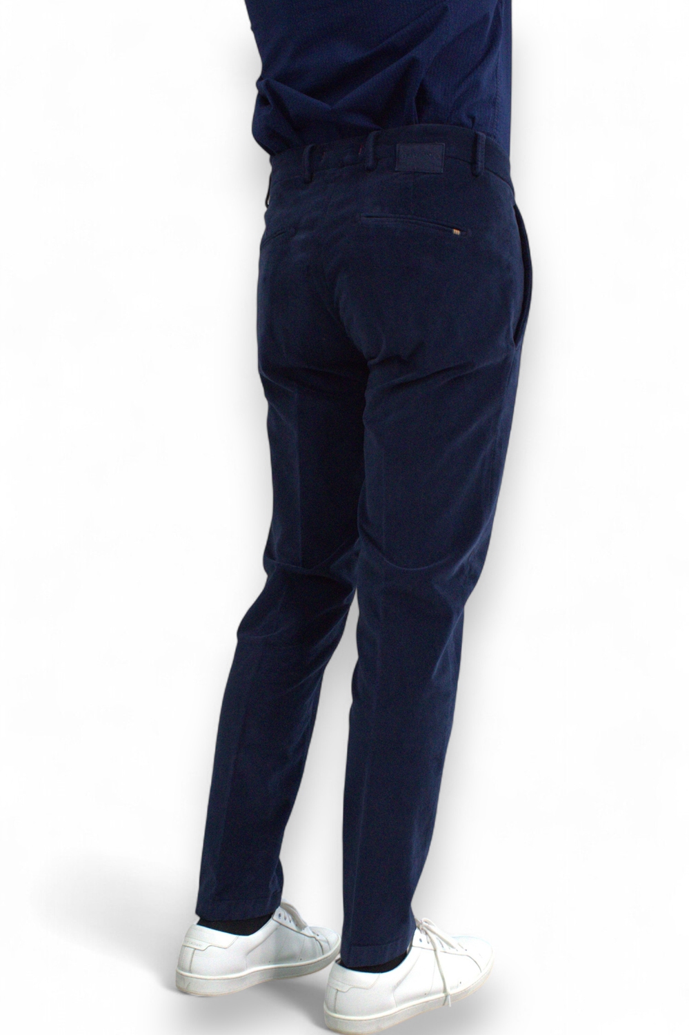PANTALONE SLIM FIT IN VELLUTO LISCIO COLOR BLU SCURO