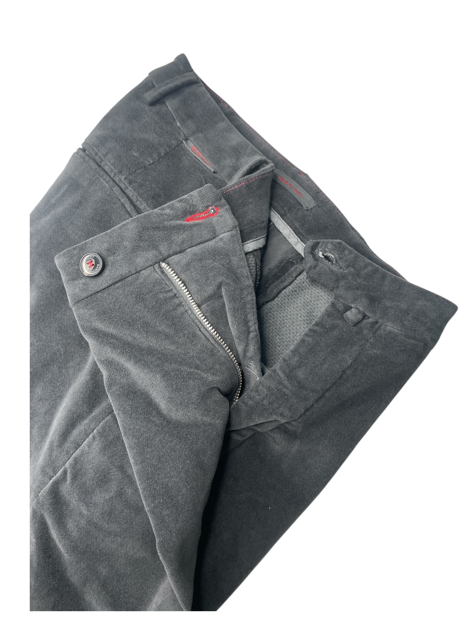 PANTALONE SLIM FIT IN VELLUTO LISCIO COLOR GRIGIO MEDIO