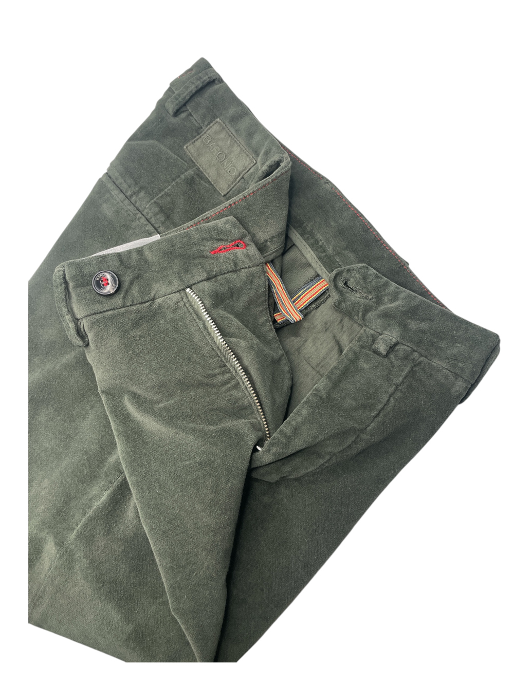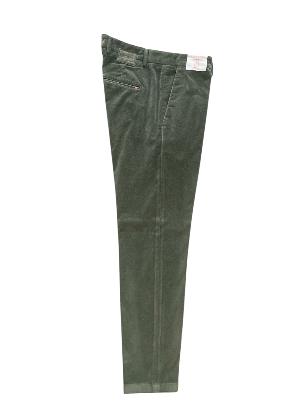 PANTALONE SLIM FIT IN VELLUTO LISCIO COLOR VERDE MILITARE
