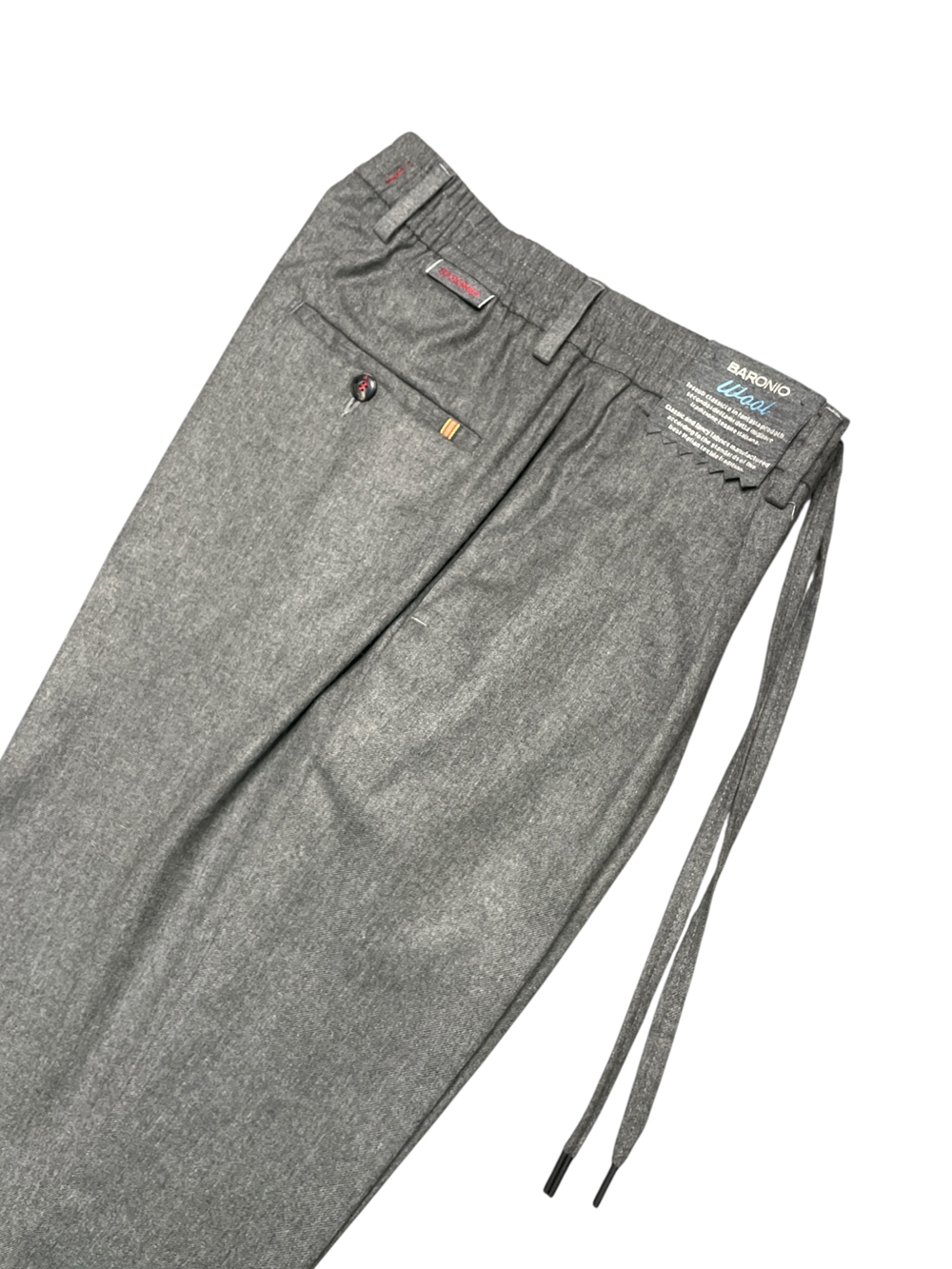 PANTALONE TASCA AMERICA CON COULISSE E PATTINE POSTERIORI IN LANA COLOR GRIGIO MEDIO
