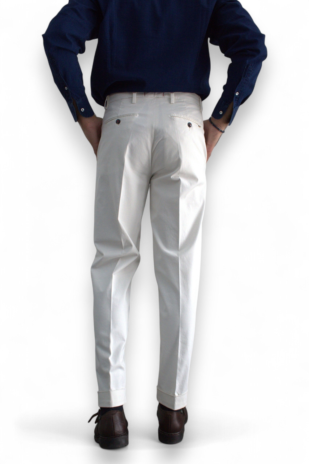 PANTALONE TASCA AMERICA CON PENCE E RISVOLTO COLOR PANNA