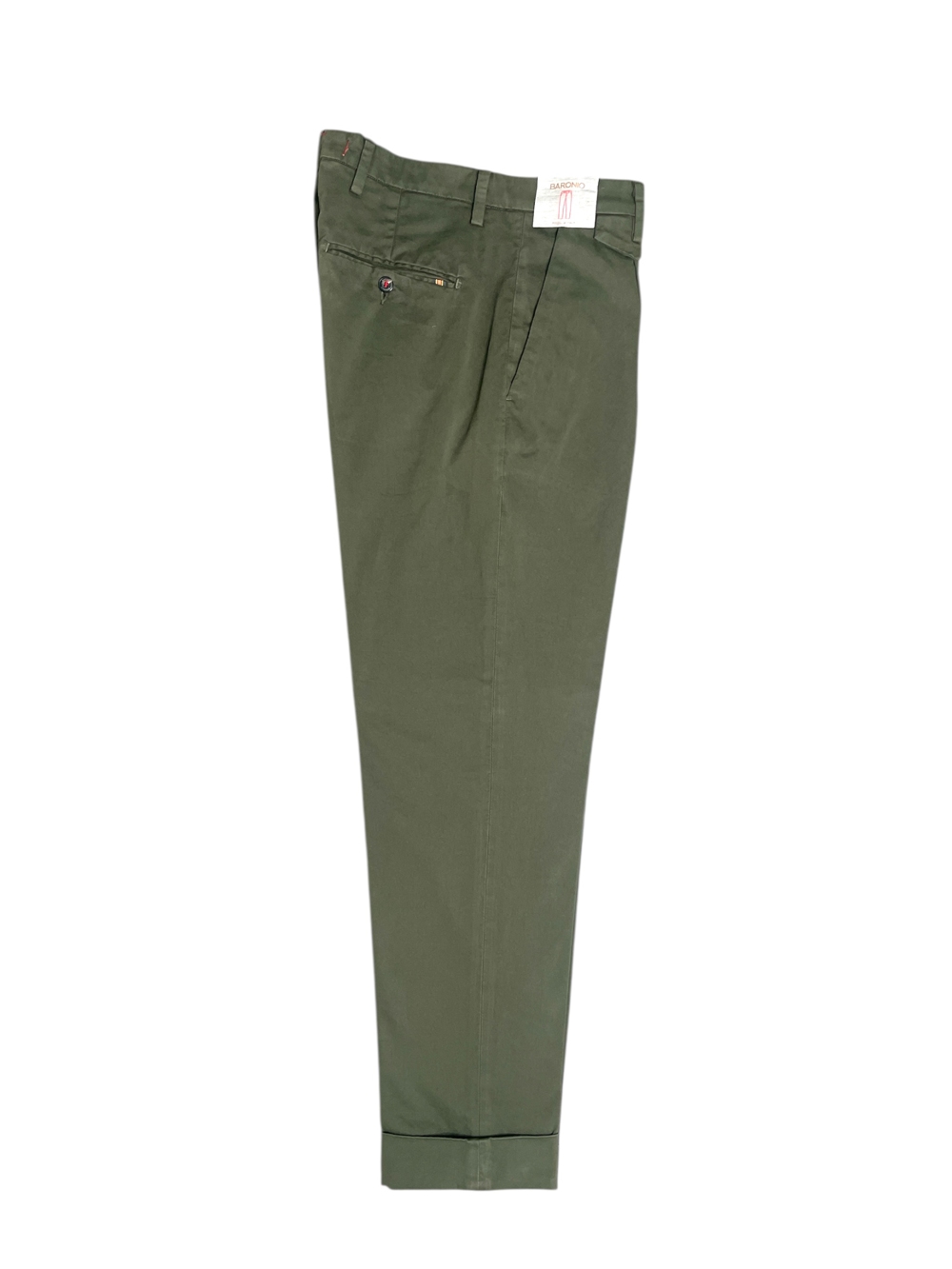 PANTALONE TASCA AMERICA CON PENCE E RISVOLTO COLOR VERDE MILITARE